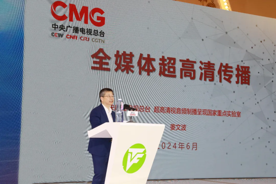 中央广播电视总台编务会议成员姜文波介绍了总台在构建IP化全媒体超高清制播体系、推进视音频技术升级换代、创新超高清电视传播模式等方面承担的重大任务和具体举措。他指出,电视正处于向全媒体超高清升级换代的关键阶段,要抓住广播电视升级换代和人工智能高速发展的契机,积极推进超高清视音频、人工智能、5G等高新技术的自主创新,构建自主可控的超高清制播呈现技术体系,打造媒体领域的新质生产力,推动广播电视及网络视听行业和电子信息产业高质量发展。