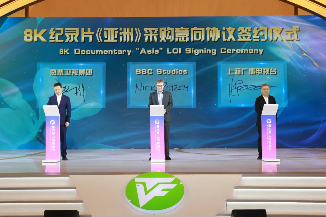 活动中同时举行了上海广播电视台与BBC Studios、凤凰卫视“8K纪录片《亚洲》采购意向协议”签约仪式。BBC Studios全球市场总裁尼克·珀西,凤凰卫视事业发展副总裁张彤,上海文化广播影视集团有限公司副总裁陈雨人代表三方进行签约。
