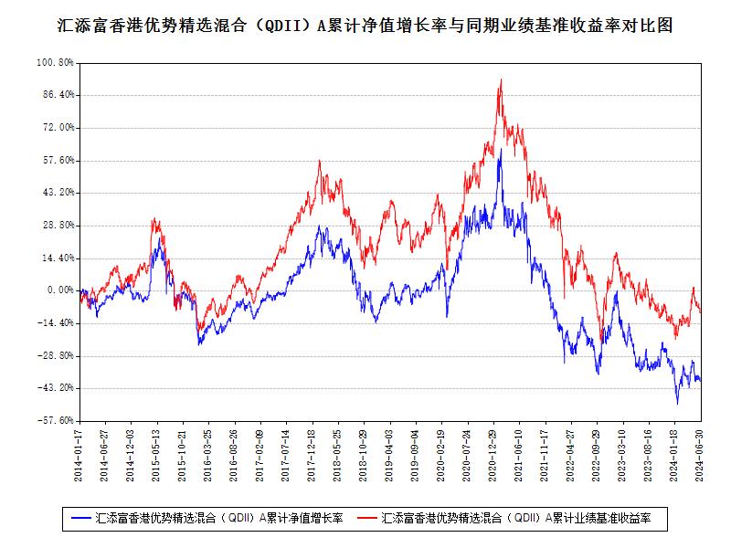 报告显示,汇添富香港优势精选混合(QDII)2024年二季度净值收益率,业绩比较基准个百分点,以下为其成立以来净值收益率与同期业绩比较基准(MSCI中华指数(MSCIZhongHuaIndex))的走势对比: