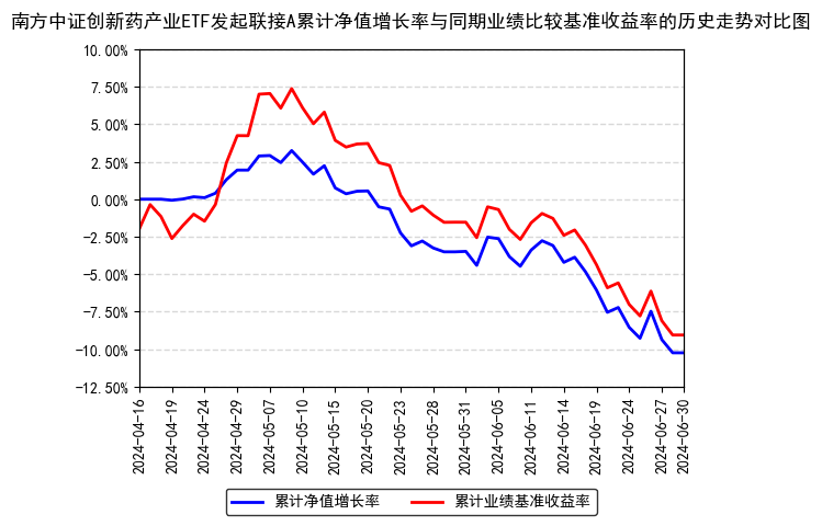 报告显示,业绩比较基准个百分点,以下为其成立以来净值收益率与同期业绩比较基准(中证创新药产业指数(931152.ZZ)收益率×95%+银行活期存款利率(税后)×5%。)的走势对比: