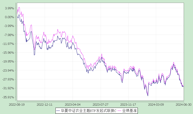 报告显示,业绩比较基准个百分点,以下为其成立以来净值收益率与同期业绩比较基准(中证农业主题指数(000949.SH)收益率×95%+人民币活期存款税后利率×5%。)的走势对比: