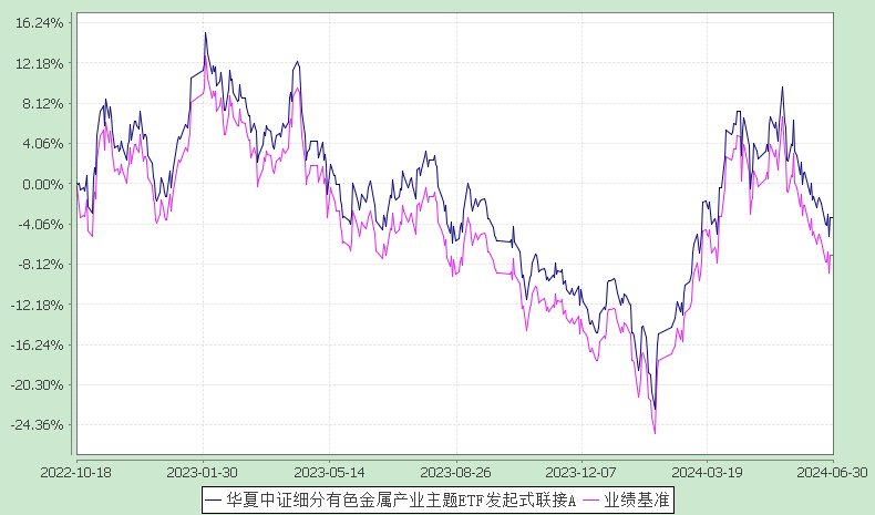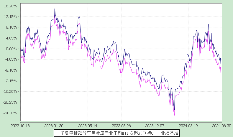 报告显示,业绩比较基准个百分点,以下为其成立以来净值收益率与同期业绩比较基准(中证细分有色金属产业主题指数收益率×95%+人民币活期存款税后利率×5%)的走势对比: