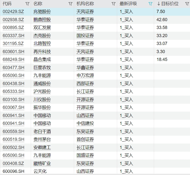 8月14日,截至发稿,机构共给出38次最新买入评级,其中7只个股目标价获公布: