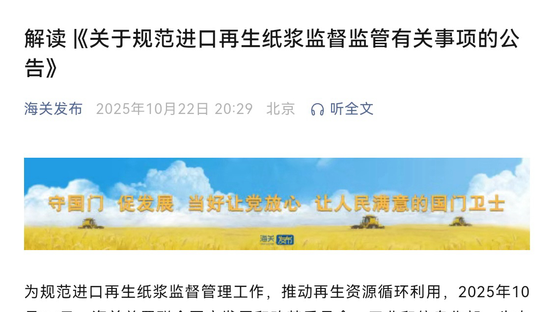 “海关总署的公告虽然字数不多,但却宣告了干磨纸浆红利时代的终结。”