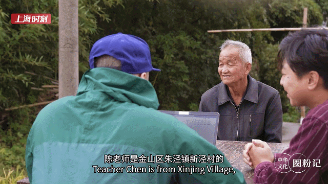 为了不影响吴飞得的课题研究,我们与他相约在金山区朱泾镇新泾村村委会碰头。今年77岁的陈金毛是土生土长的新泾村农民,活动室里,他正在向吴飞得和他的搭档介绍早前的民俗与方言。吴飞得用专业的话筒收音,并在电脑上认真记录,搭档则在一旁用金山话和老人沟通,你来我往间一点一滴地将金山最原生态的方言留存下来。
