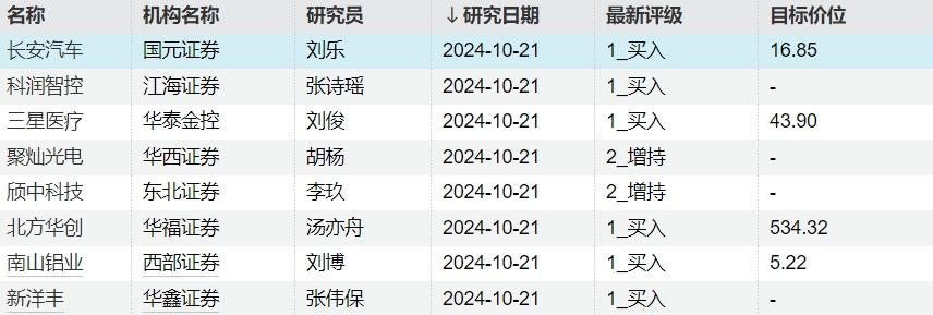 Wind数据显示,机构今日首次关注8只个股,其中,长安汽车获国元证券看好,目标价16.85元;三星医疗获华泰金控青睐,目标价43.9元;聚灿光电、北方华创、南山铝业等在列。