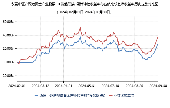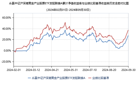 报告显示,业绩比较基准个百分点,以下为其成立以来净值收益率与同期业绩比较基准(中证沪深港黄金产业股票指数收益率*95%+银行活期存款利率(税后)*5%)的走势对比: