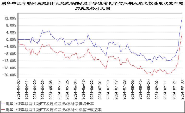 报告显示,业绩比较基准个百分点,以下为其成立以来净值收益率与同期业绩比较基准(中证车联网主题指数(930725.ZZ)收益率×95%+银行人民币活期存款利率(税后)×5%)的走势对比: