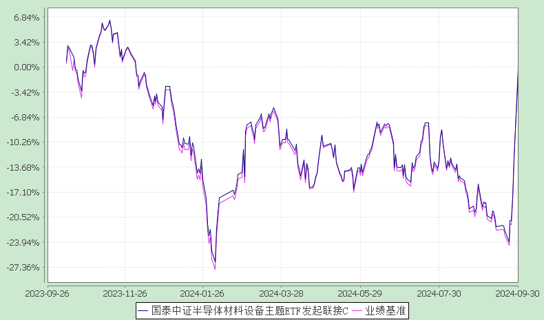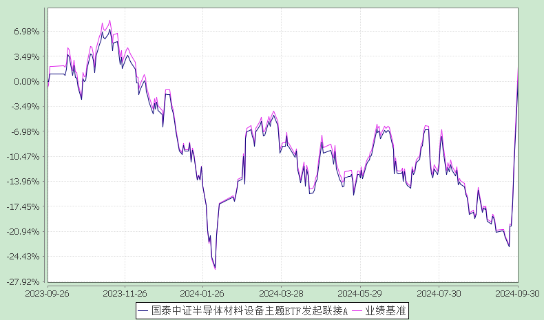 报告显示,业绩比较基准个百分点,以下为其成立以来净值收益率与同期业绩比较基准(中证半导体材料设备主题指数收益率*95%+银行活期存款利率(税后)*5%)的走势对比: