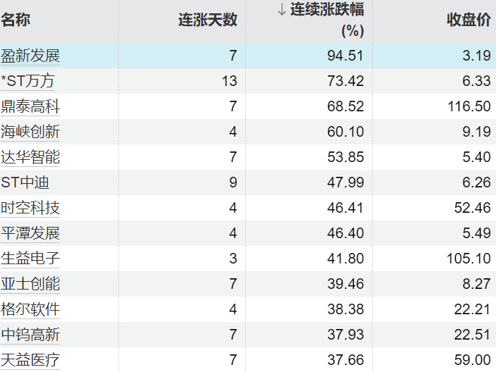 152只个股连续上涨5个交易日及以上