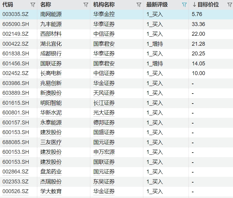12月18日,截至发稿,机构共给出20次最新买入评级,其中7只个股目标价获公布: