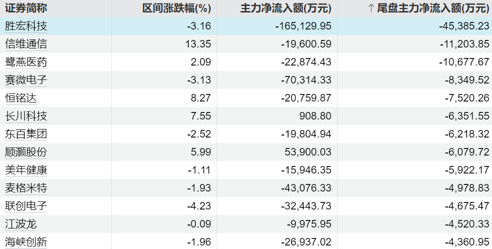 主力今日尾盘买卖这些个股
