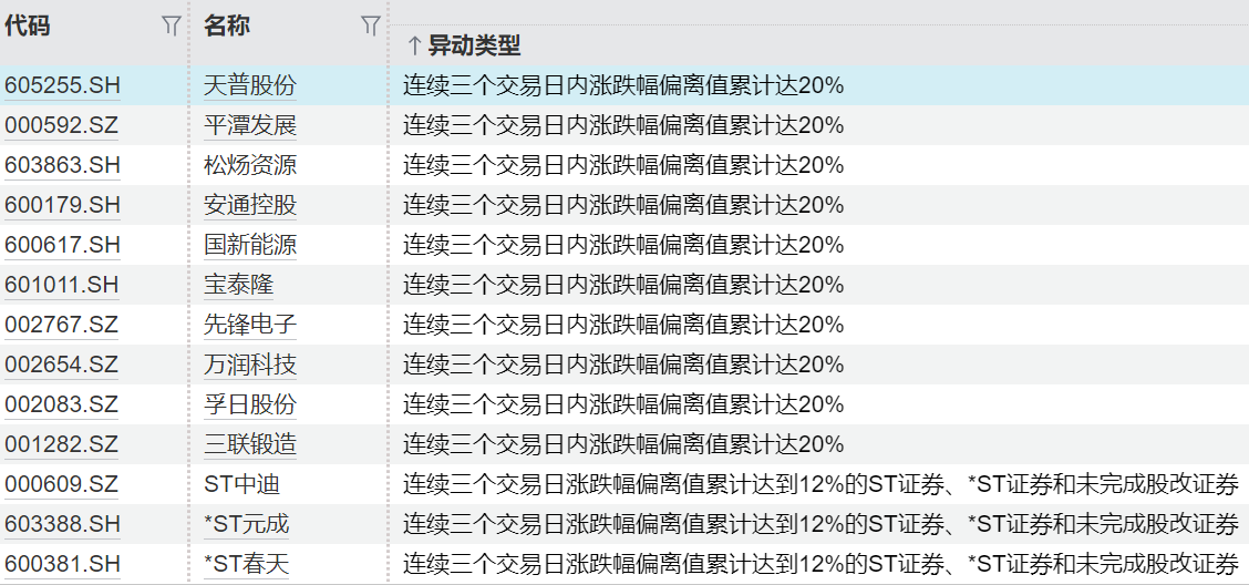 截至3月11日,近日A股有7只个股连续异动2个交易日及以上。超捷股份、*ST普利连续3个交易日内收盘价格涨跌幅偏离值累计达30%东易日盛、汉钟精机、襄阳轴承、联诚精密连续三个交易日内涨跌幅偏离值累计达20%。*ST旭蓝连续三个交易日涨跌幅偏离值累计达到12%。