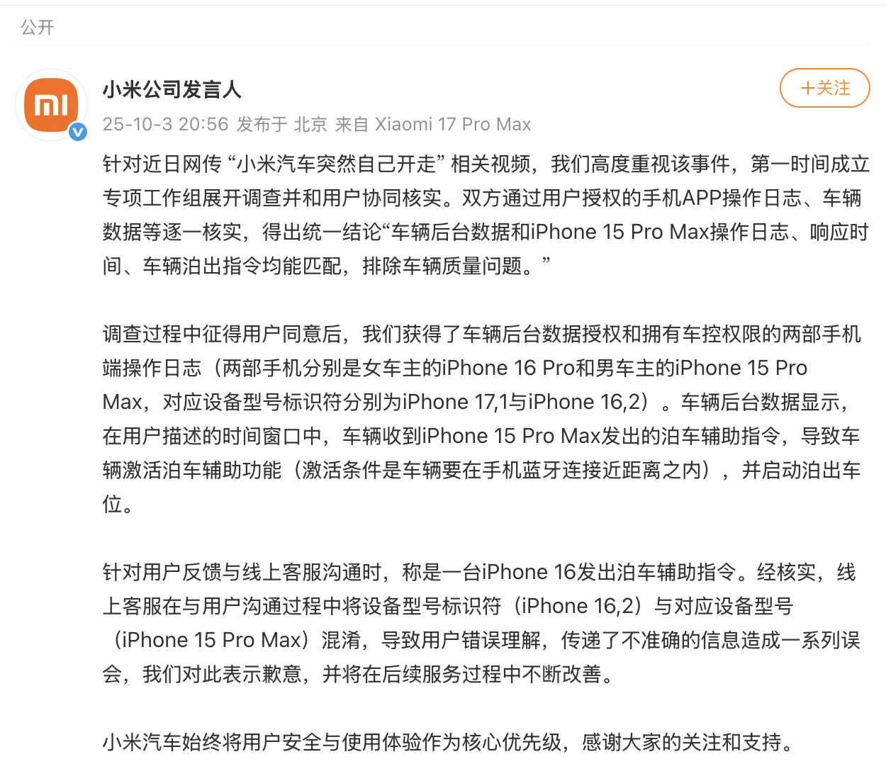小米回应“小米汽车突然自己开走” 相关视频