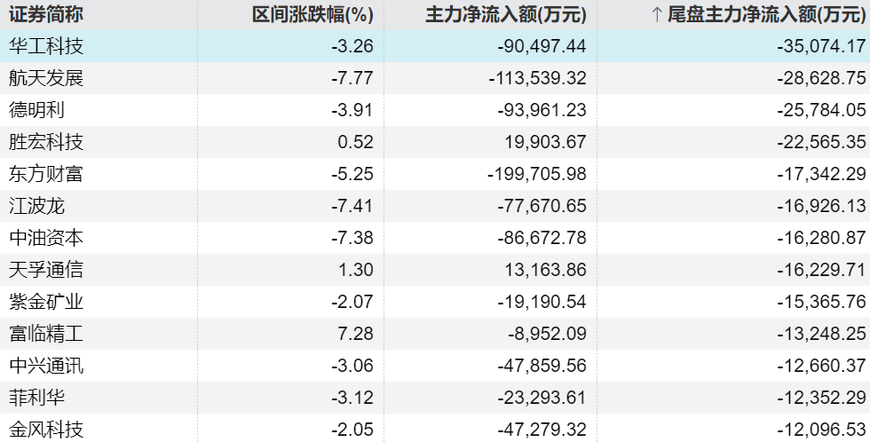 主力今日尾盘买卖这些个股