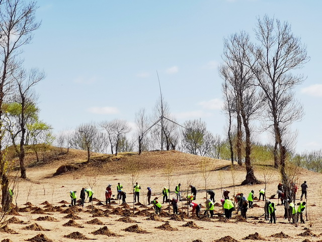 4月22日,辽宁省彰武县章古台林场万亩沙棘种植项目现场。摄影/章轲