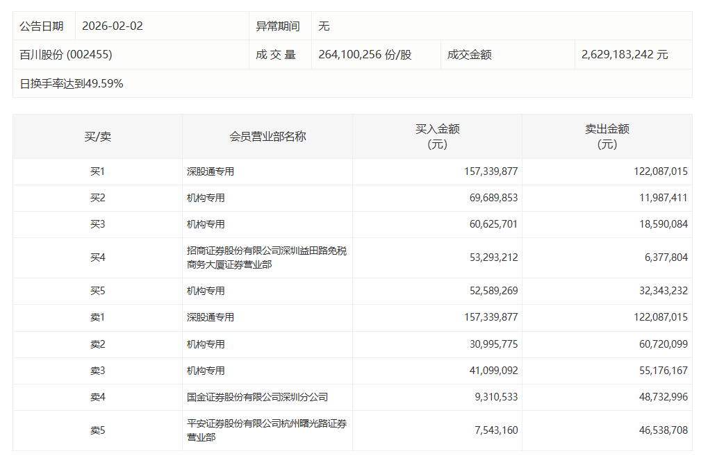 百川股份今日跌2.29%,3家机构专用席位净买入1.20亿元