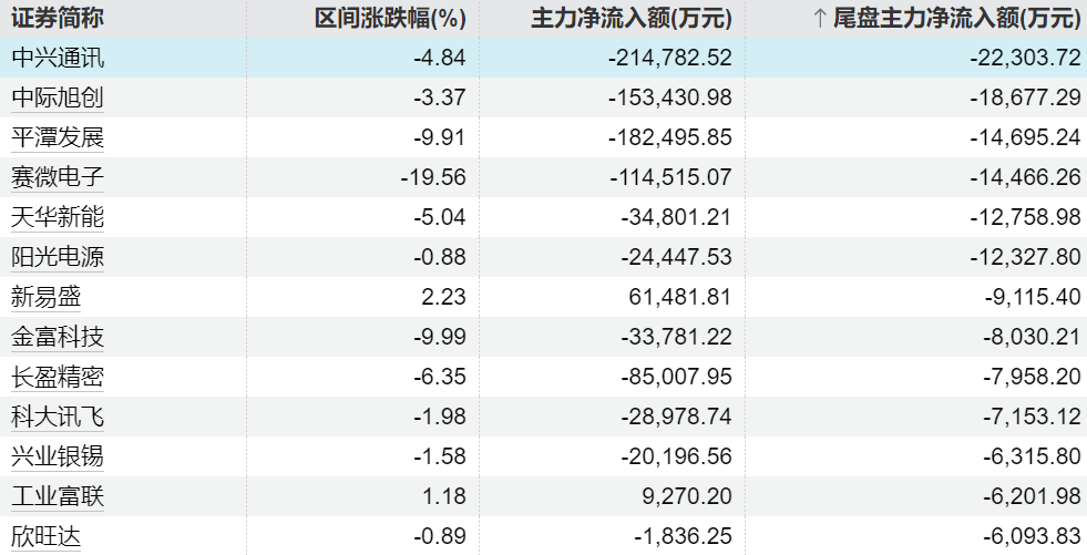 7月14日,主力尾盘大幅净流入楚天龙、天阳科技、翰宇药业,金额为2.04亿元、6424.67万元、5497.72万元;同时,中银证券、北方稀土、恒宝股份尾盘主力净流出规模居前。
