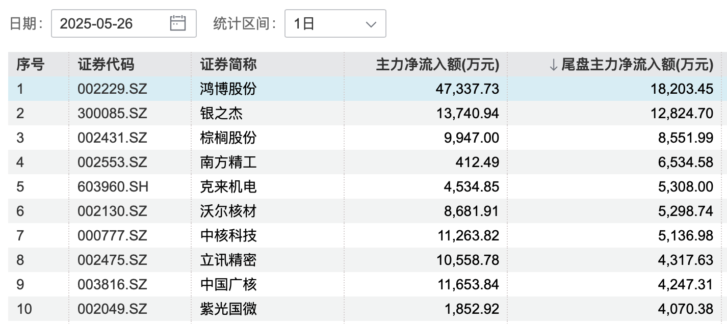 主力今日尾盘买卖这些个股