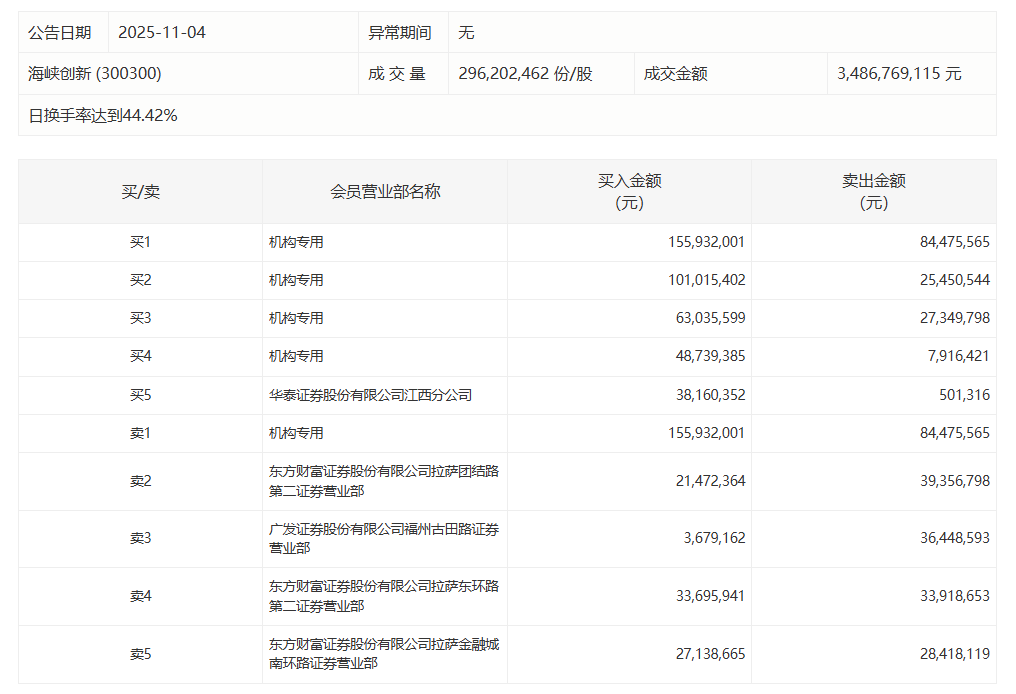 海峡创新今日涨19.98%,4家机构专用席位净买入2.24亿元