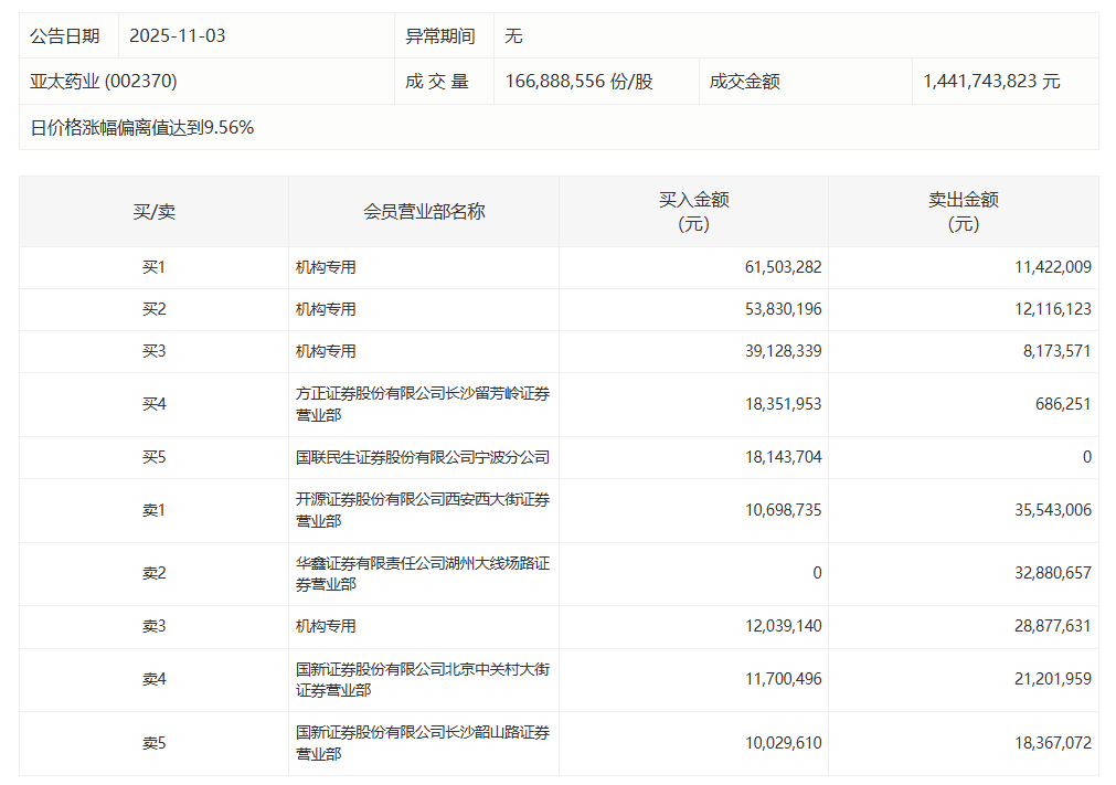 亚太药业今日涨3.90%,4家机构专用席位净买入1.35亿元