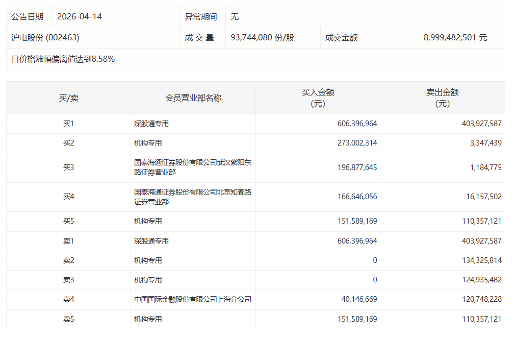 沪电股份今日涨停,2家机构专用席位净买入3.11亿元