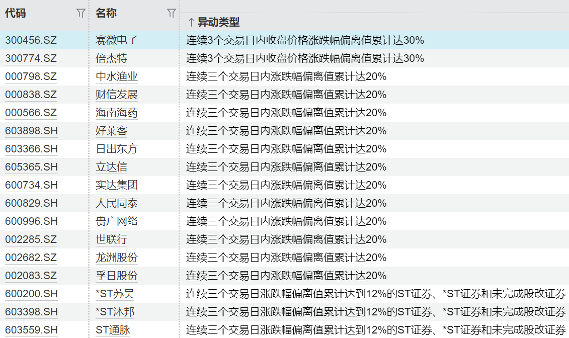 连续异动个股一览