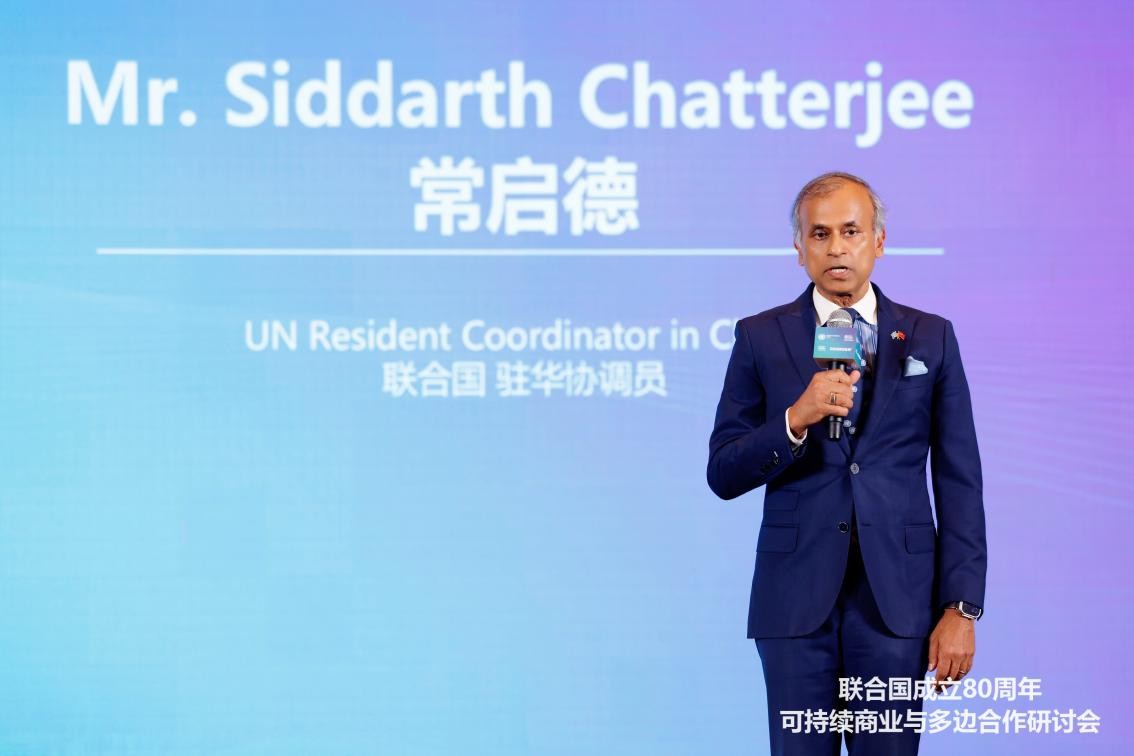 在开幕致辞环节,联合国驻华协调员常启德(Siddarth Chatterjee)强调了多边主义和各方携手努力共同应对当前全球挑战的重要性。他表示:“在联合国成立80周年之际,愿我们将今日的对话转化为明日的解决方案,重塑多边主义,为韧性供应链注入动力,并为全人类构建可持续的未来。”