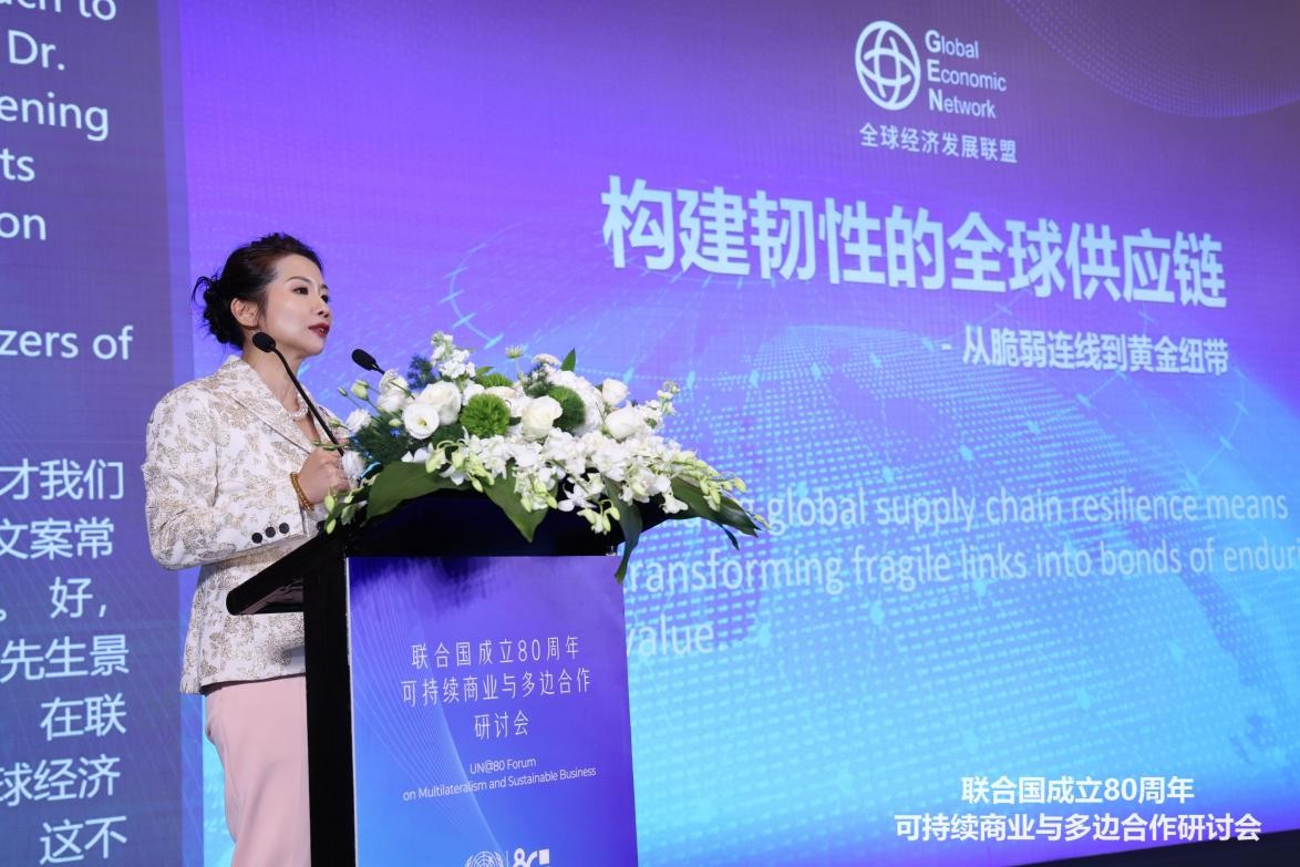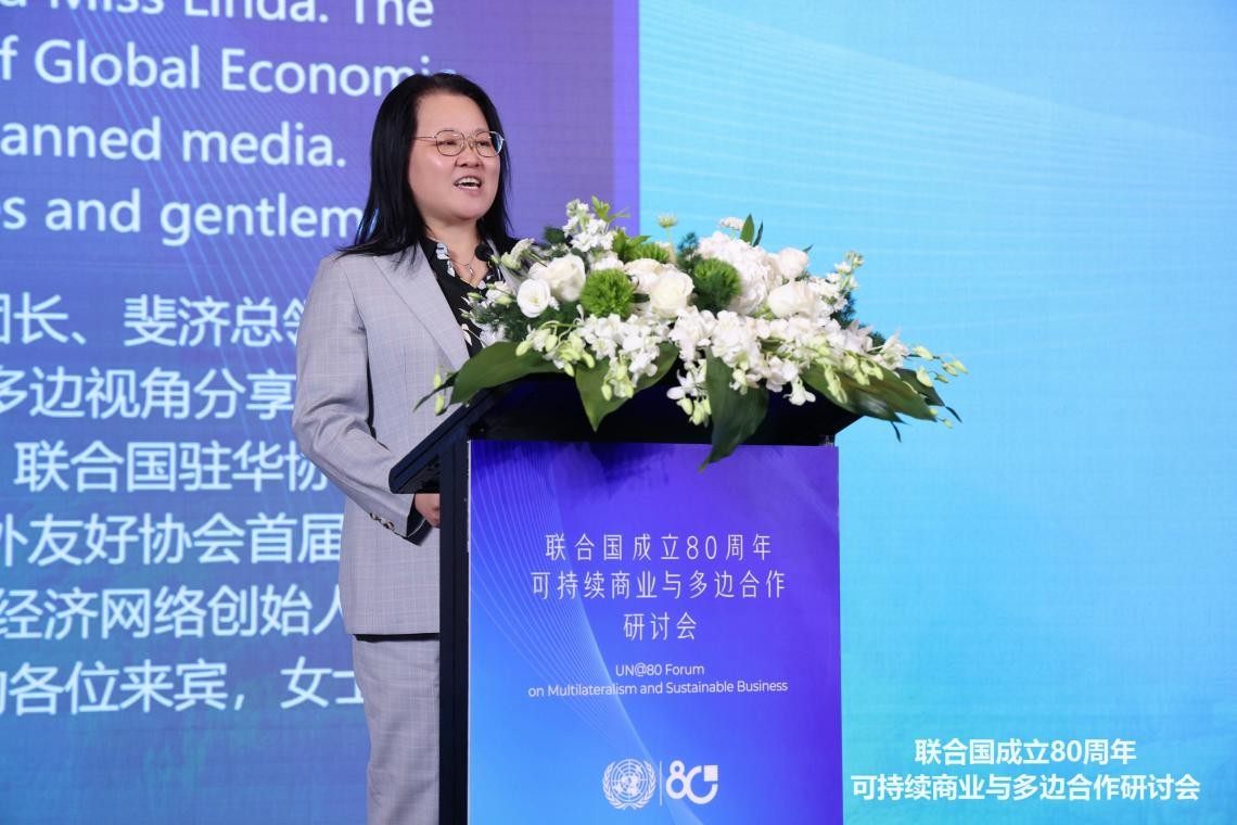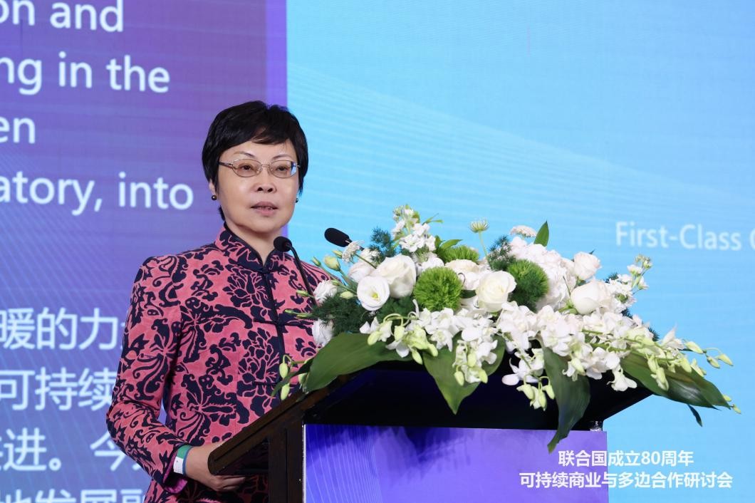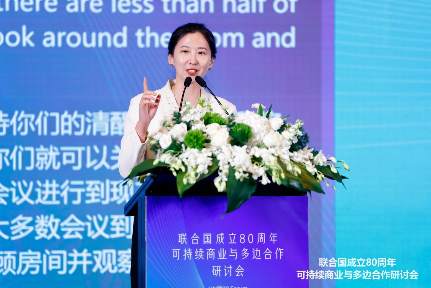 会议最后,联合国全球契约组织驻华代表刘萌进行总结发言表示,本次研讨会通过务实交流和跨区域、多领域协作,为多边治理体系带来了更多元解决方案和合作机遇。她强调:“我们需要联合私营部门,借助其网络、技术、人才及创新能力,助力政府实现全球目标。”