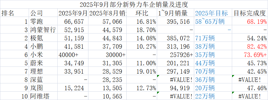 刚刚过去的“金九”,新势力车企的销售进入了七强混战时期。零跑、极氪、鸿蒙智行、小鹏、小米、蔚来和理想的销量都达到了3万辆以上。