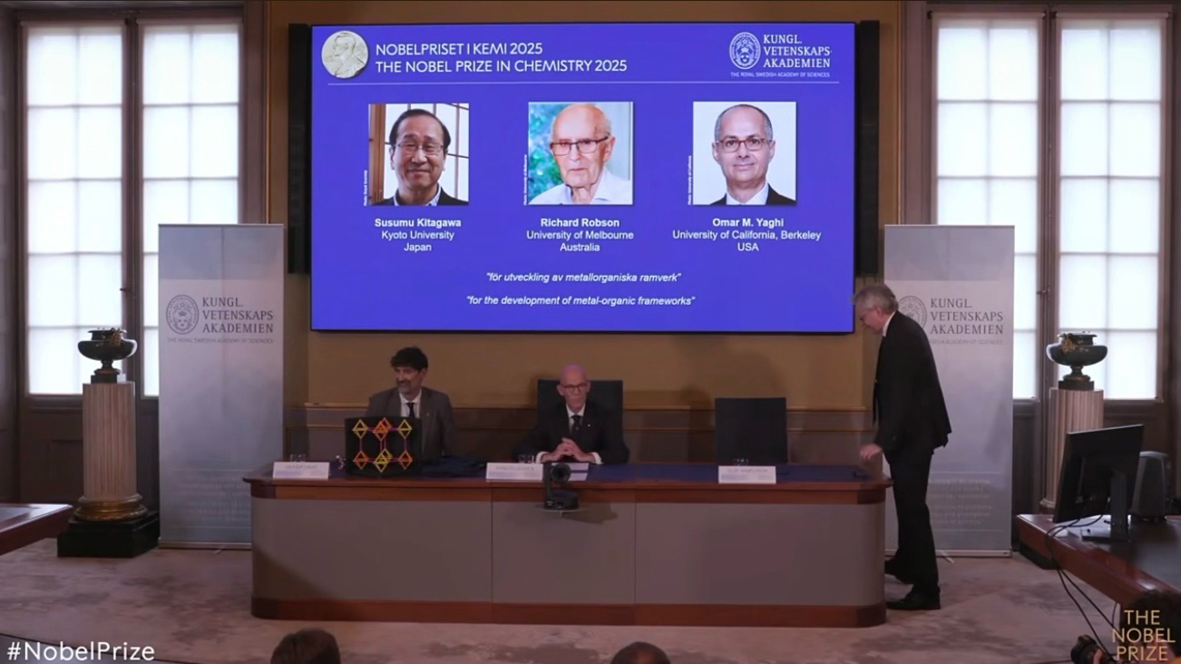 当地时间10月8日,瑞典皇家科学院决定将2025年诺贝尔化学奖授予北川进(Susumu Kitagawa)、理查德·罗布森(Richard Robson)以及奥马尔·M·亚吉(Omar M. Yaghi)三位科学家,以表彰其在金属有机骨架开发领域的贡献。