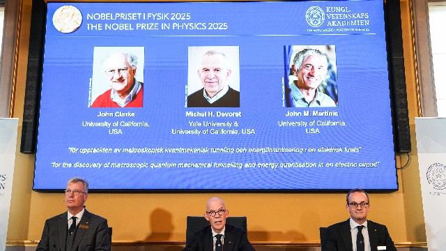 此前两天,诺贝尔生理学或医学奖以及诺贝尔物理学奖陆续颁出。6日,日本科学家大阪大学教授坂口志文(Shimon Sakaguchi)与两位美国科学家玛丽·布伦科(Mary Brunkow)、弗雷德·拉姆斯德尔(Fred Ramsdell)被共同授予诺贝尔生理学或医学奖,他们因在“外周免疫耐受方面的发现”获得表彰;7日,诺贝尔物理学奖授予法国科学家米歇尔·德沃雷特(Michel Devoret)、英国科学家约翰·克拉克(John Clarke)和美国科学家约翰·马丁尼斯(John Martinis),他们因“在电路中发现宏观量子力学隧穿和能量量子化”获奖。