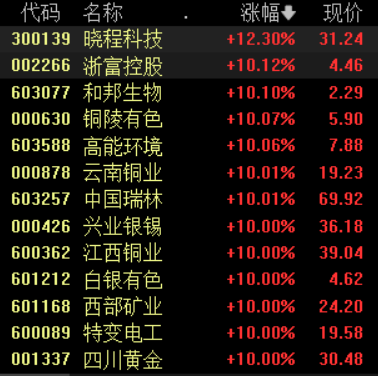 15:01 A股收盘|有色行业全线爆发