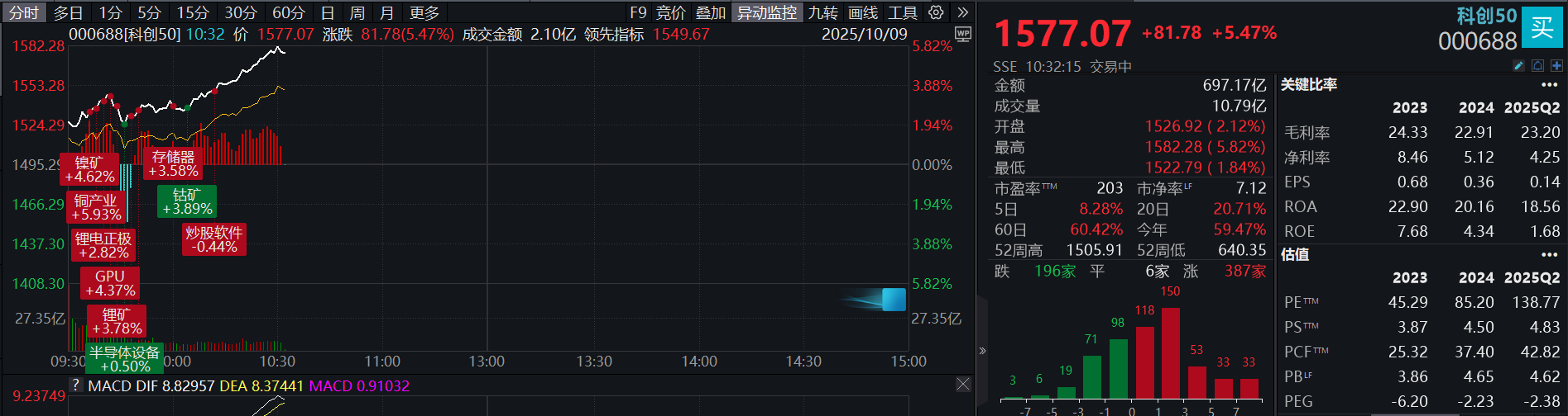 10:05 存储芯片概念全线爆发,华虹公司逼近20%涨停,雅克科技、深南电路、通富微电、赛腾股份、太极实业集体封板;兆易创新冲击涨停,股价创历史新高。