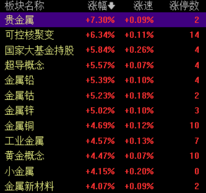 盘面上,核电、半导体、贵金属概念全线大涨;顺周期方向普跌,文旅、航运、白酒股跌幅居前。