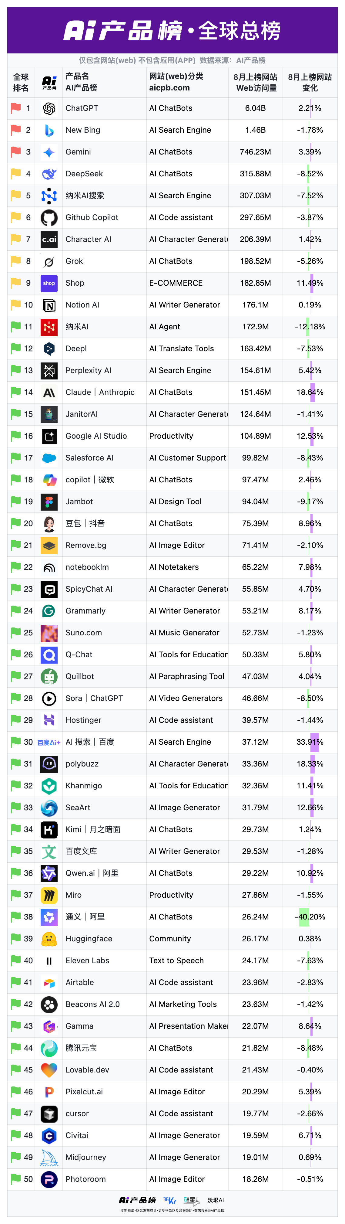 因此,行业增长模式也发生了转变。早期通过大规模市场投放实现用户增长的阶段已基本结束(比如腾讯元宝),多款对话类产品以及整合图像、音频和视频的多模态创作工具的用户增速明显放缓,市场从野蛮生长进入存量竞争。