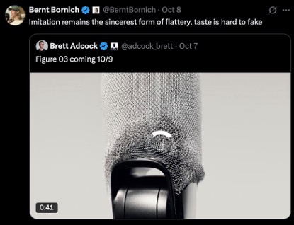 Figure 03的预告视频发布之后,竞争对手们就很快“坐不住”了。