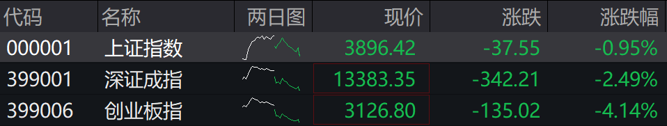 沪指跌0.51%,深成指跌1.85%,创业板指跌3.4%。