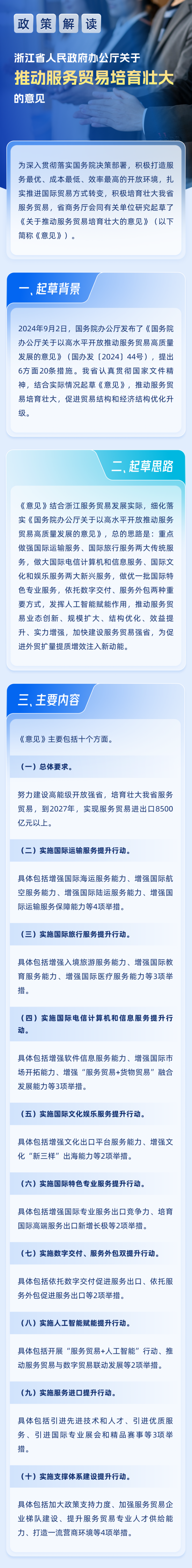 服务贸易是国际贸易的重要组成部分和国际经贸合作的重要领域,当前,服务贸易正成为全球贸易增长的主要引擎。记者注意到,此次出台的《意见》提出通过实施国际运输服务提升、国际旅行服务提升、国际电信计算机和信息服务提升等9大行动,推动浙江服务贸易业态创新、规模扩大、结构优化、效益提升、实力增强,培育壮大浙江服务贸易。