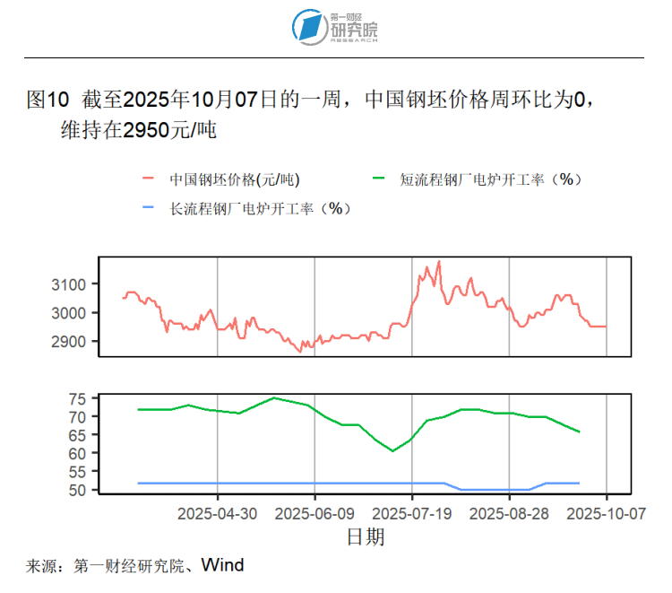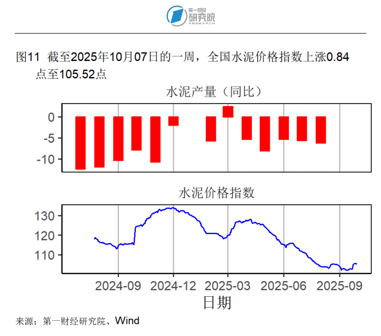 截至10月7日的钢坯价格与一周前水平一致,过去一个月下降了1.01%,较去年同期下降了13.49%。水泥价格在截至10月7日的一个月上升了2.67%,较去年同期下降了15.11%。动力煤价格在过去一个月上升了0.15%,较去年同期下降了5.18%。
