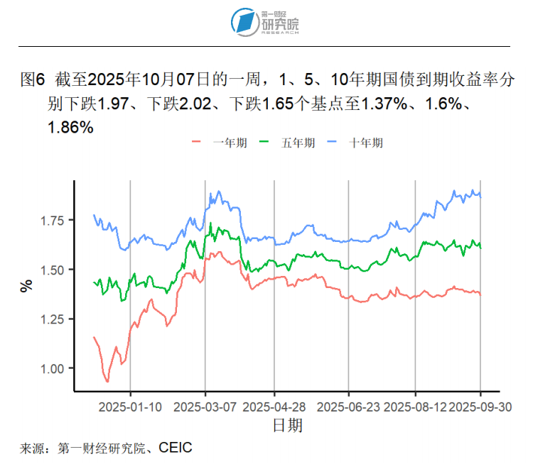 截至10月7日的一周,1年期、5年期和10年期国债到期收益率分别下降1.97、2.02和1.65个基点至1.37%、1.6%和1.86%。