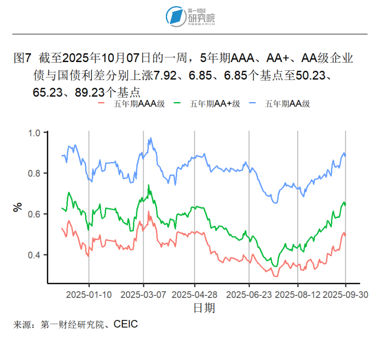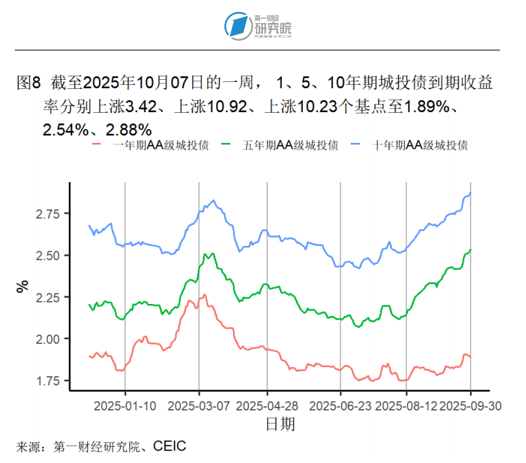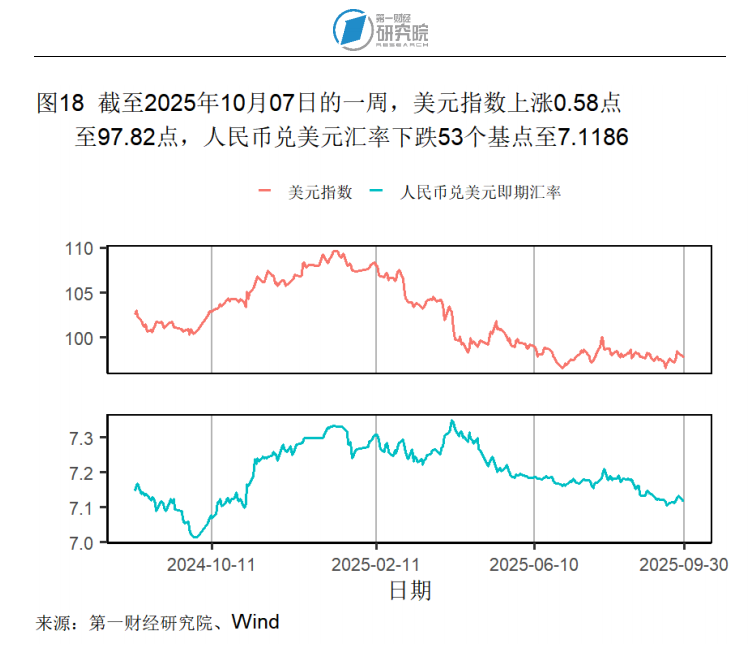 高频数据显示,截至10月7日的一周,美元指数上升了0.58点至97.82点;人民币对美元汇率下降了53个基点至7.1186。