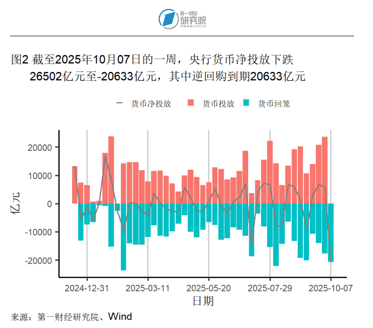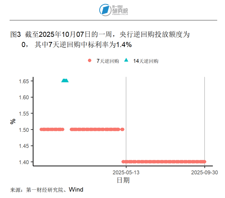 截至10月7日的一周,央行通过公开市场净回笼资金20633亿元。本周,央行逆回购投放额度为0,逆回购到期20633亿元,7天逆回购中标利率为1.4%。