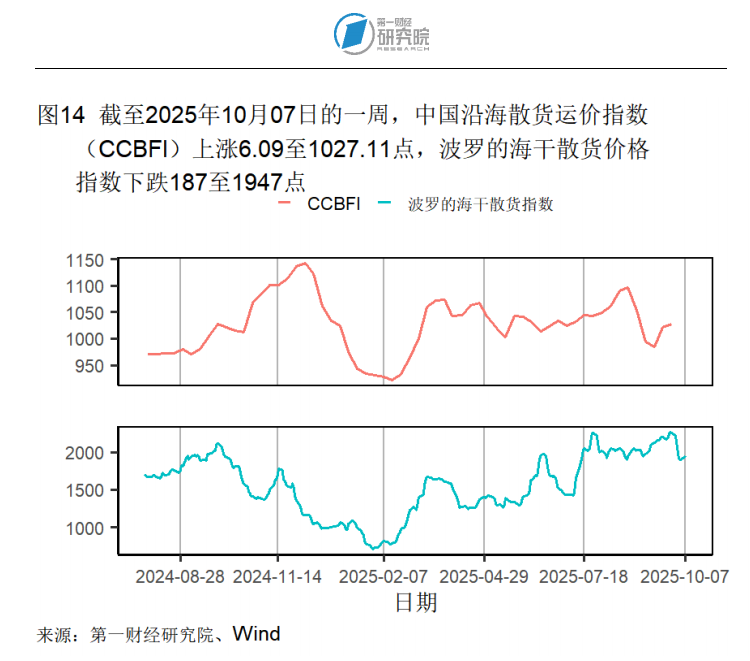 中国沿海散货运价指数(CCBFI)在截至10月7日的一周上升了6.09点至1027.11点;波罗的海干散货价格指数下降了187点至1947点。