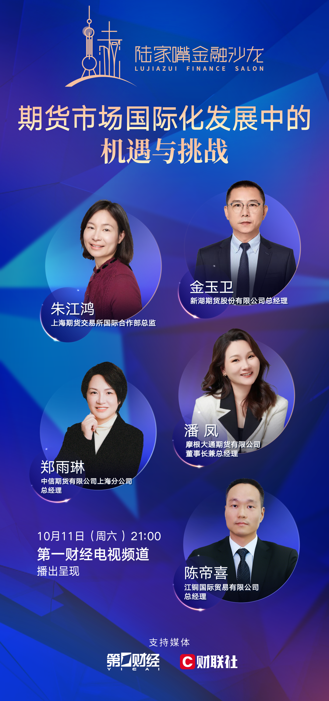 本场沙龙详细内容,敬请关注第一财经频道10月11日21:00、10月12日13:20播出的电视节目:《期货市场国际化发展中的机遇与挑战》。