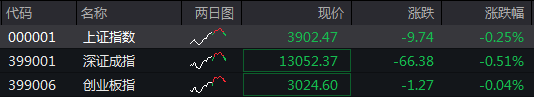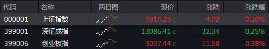 截至收盘,上证指数涨0.1%,深证成指跌0.25%,创业板指涨0.38%。