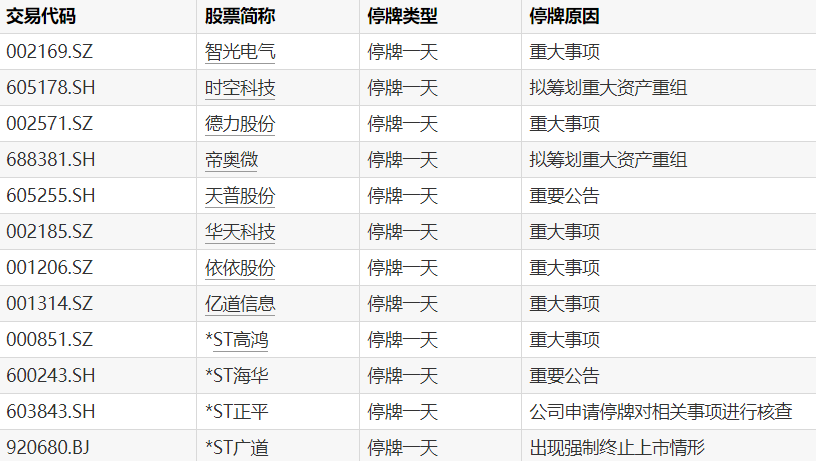 Wind数据显示,10月17日,时空科技、帝奥微、依依股份等7只个股停牌。