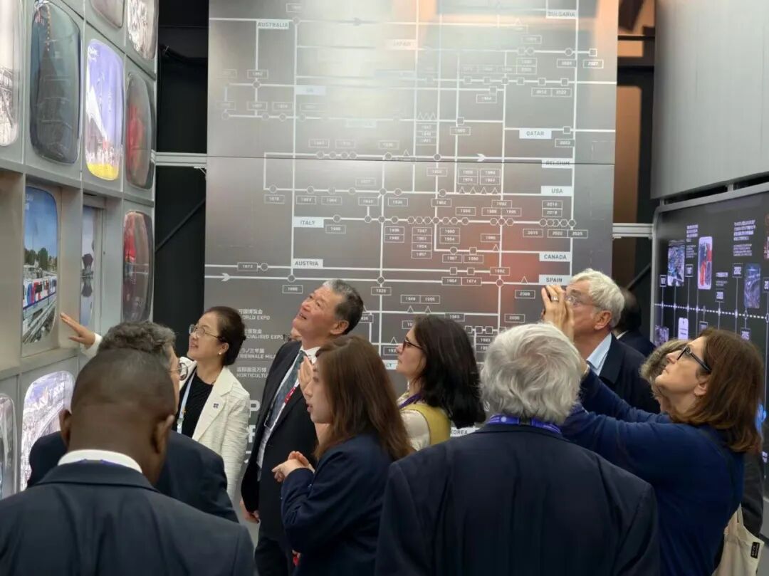 国展局秘书长迪米特里今年5月首次到访世博馆展区时以“精彩绝伦”高度评价本次展览,并于10月11日特地安排国展局官方代表团来到世博馆展区参观。
