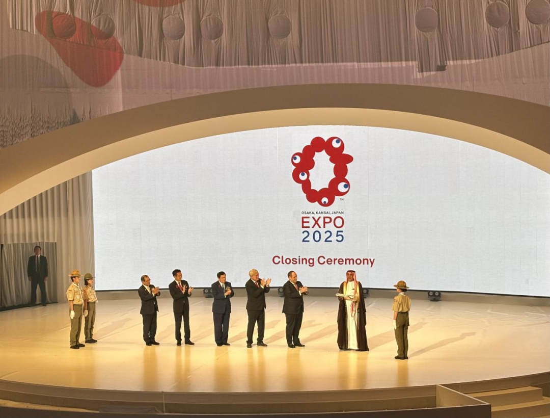 在大阪世博会闭幕式上,国展局局旗被分别交至塞尔维亚2027年贝尔格莱德专业类世博会和沙特阿拉伯2030年利雅得综合类世博会的主办方手中,象征着世博会的不断延续。