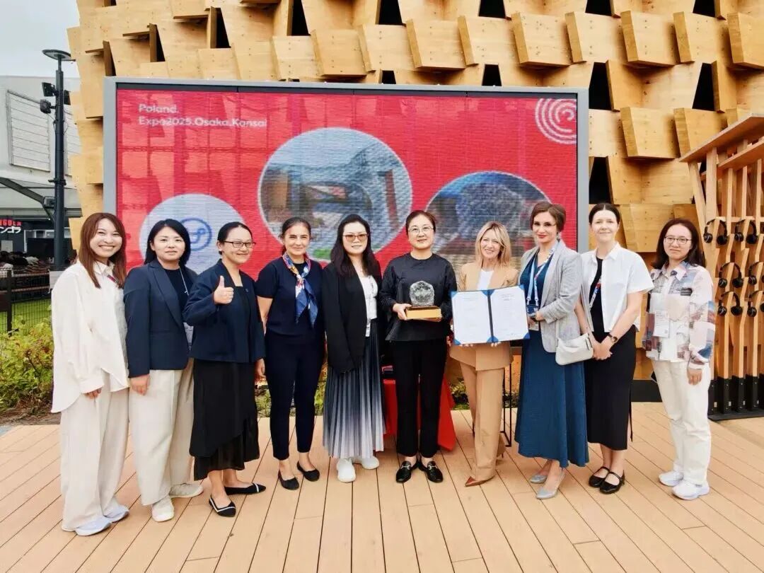 大阪世博会波兰馆副总代表玛尔塔·热林斯卡女士与伊丽莎·克洛诺夫斯卡-西瓦克女士代表波兰,向世博会博物馆捐赠《波兰国王之冠》盐矿雕塑。
